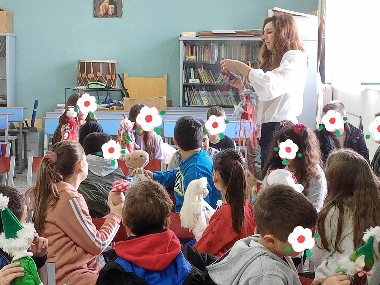 Εκτός από τις δράσεις του «Παραμυθιού από ζάχαρη», την Πέμπτη, το παραμύθι της Ανάσσας του Πάγου επισκέφτηκε το Δημοτικό Σχολείο Δοκιμίου και το 23ο Νηπιαγωγείο Αγρινίου. Στα δύο δημοτικά σχολεία και στο Νηπιαγωγείο Αγγελοκάστρου πραγματοποίησα ένα ξεχωριστό μάθημα δημιουργικής γραφής και δημιουργήσαμε τυμπανάκια για τα παιδιά της Φλόγας, ενώ στο 23ο Νηπιαγωγείο Αγρινίου είχα τη χαρά να νανουρίσω τα νήπια του Ολοήμερου Νηπιαγωγείου με την αφήγηση της Ανάσσας των Χριστουγέννων. Οι μαθητές του Δοκιμίου ζωγράφισαν και έφτιαξαν πάρα πολλές κάρτες, τις οποίες παρέδωσα στην κα Παπαγιάννη για να φτάσουν στα χεράκια των παιδιών που βρίσκονται στο Νοσοκομείο, στην Αθήνα.
