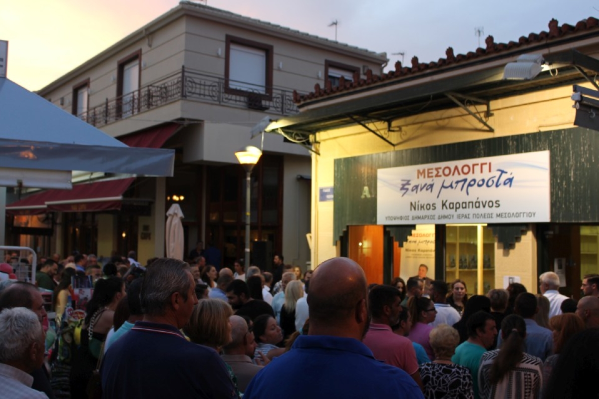 Σε ενθουσιώδες κλίμα έγιναν το απόγευμα της Κυριακής (17/9) τα εγκαίνια του εκλογικού κέντρου του υποψηφίου δημάρχου Ιεράς Πόλεως Μεσολογγίου, Νίκου Καραπάνου.