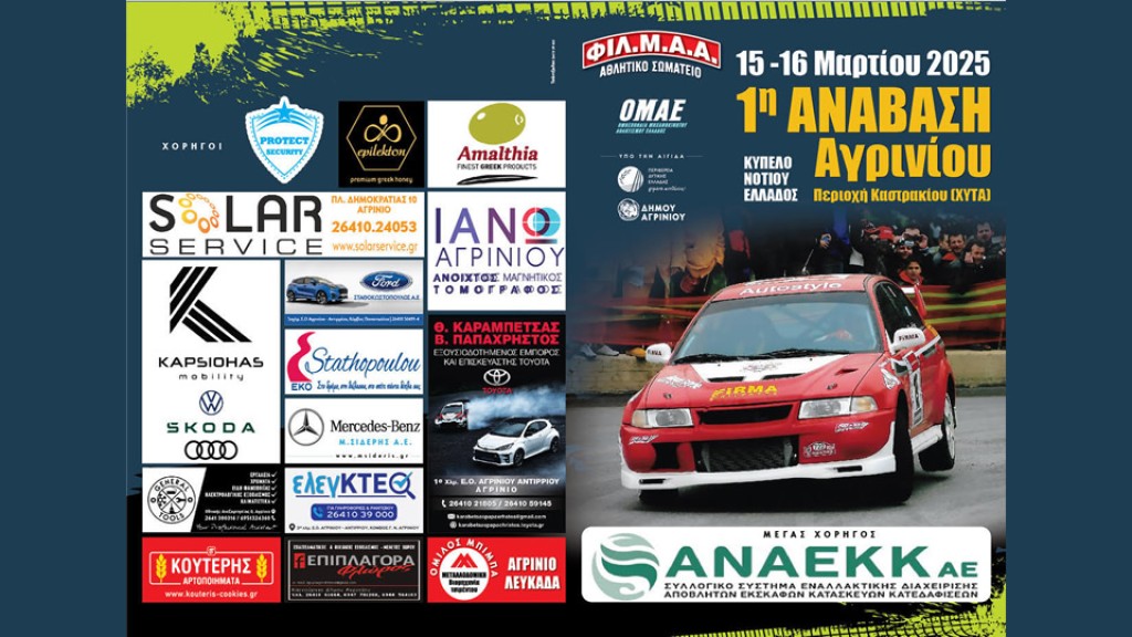 Ο πίνακας συμμετεχόντων στην 1η Ανάβαση Αγρινίου το Σ/Κ 15-16/3/2025 στην περιοχή Καστρακίου (ΧΥΤΑ) για το Κύπελο Νοτίου Ελλάδος.