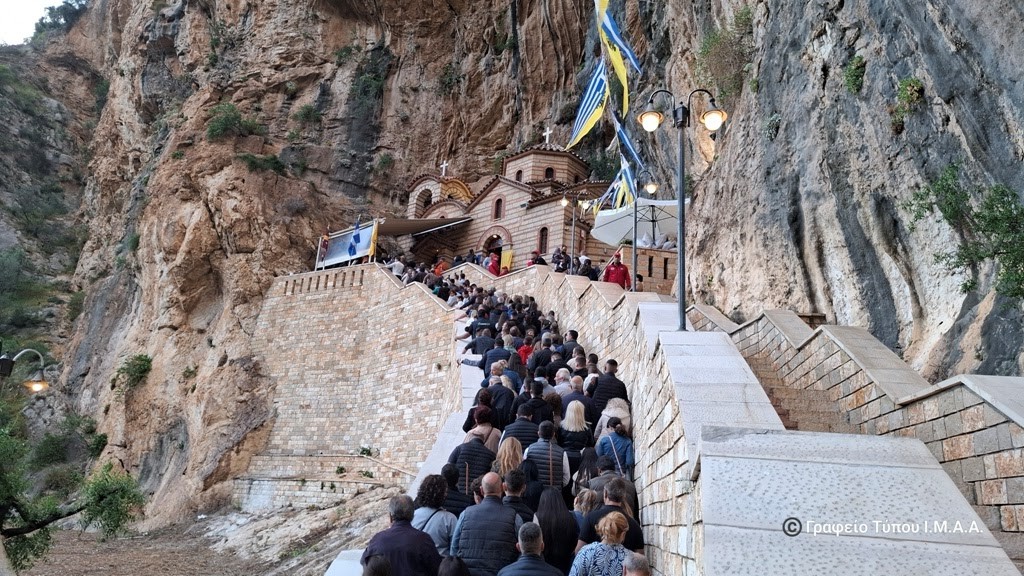 Το απόγευμα της Παρασκευής της Διακαινησίμου, ο Σεβασμιώτατος Μητροπολίτης κ. Δαμασκηνός μετέβη στο βραχομονάστηρο της Αγίας Ελεούσης, που βρίσκεται στο κακοτράχαλο φαράγγι της Κλεισούρας, στην αρχή του όρους Αράκυνθος.