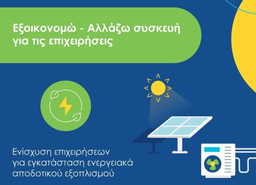 Οι αιτήσεις κατατίθενται μέσω της ηλεκτρονικής πλατφόρμας του προγράμματος: https://exoikonomo-epixeiro2023.gov.gr. Οι ενδιαφερόμενοι για περισσότερες πληροφορίες μπορούν να αποστείλουν email στο Αυτή η διεύθυνση ηλεκτρονικού ταχυδρομείου προστατεύεται από τους αυτοματισμούς αποστολέων ανεπιθύμητων μηνυμάτων. Χρειάζεται να ενεργοποιήσετε τη JavaScript για να μπορέσετε να τη δείτε.