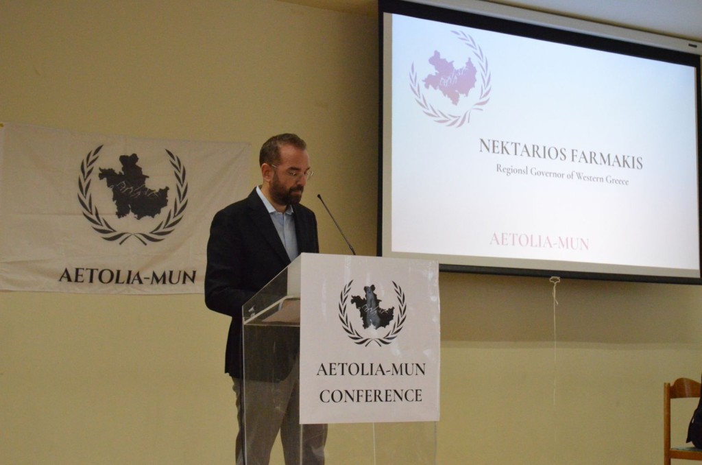 Στην τελετή έναρξης, ο Περιφερειάρχης Δυτικής Ελλάδας κ. Νεκτάριος Φαρμάκης, στην ομιλία του, παρότρυνε τους μαθητές και τις μαθήτριες να ελέγχουν την αξιοπιστία όσων ακούνε ή διαβάζουν, να ερευνούν για την αλήθεια και να επιδιώκουν τη συνεργασία και τον γόνιμο διάλογο. Τόνισε, επίσης, τη μεγάλη σημασία που έχουν οι αποφάσεις όταν προέρχονται από τη βάση της κοινωνίας, υπογραμμίζοντας την αξία της ενεργού συμμετοχής των πολιτών και τον καθοριστικό ρόλο της τοπικής αυτοδιοίκησης.