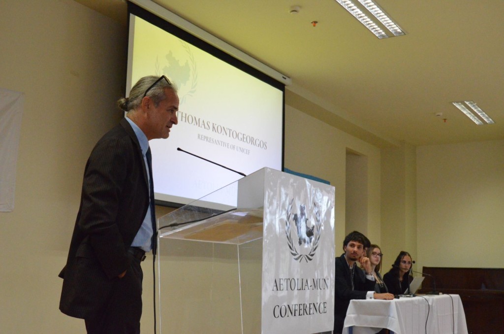 Ο εκπρόσωπος της Unicef κ. Θωμάς Κοντογιώργος, παρουσίασε τις βασικές πτυχές του έργου των Ηνωμένων Εθνών που αφορούν την ανάπτυξη, την ασφάλεια, την ειρήνη και τα ανθρώπινα δικαιώματα.