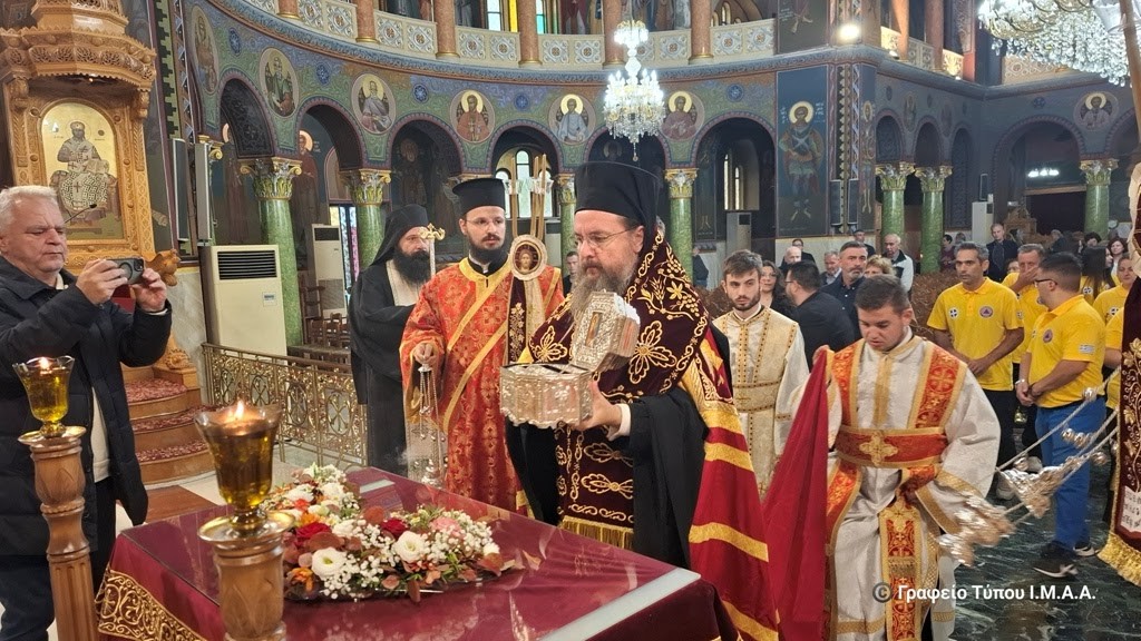 Σε πανηγυρική ατμόσφαιρα η πόλη του Αγρινίου και η Ενορία του Αγίου Δημητρίου υποδέχθηκαν απότμημα εκ του ιερού και μυροβλύζοντος Λείψανου του Αγίου ενδόξου Μεγαλομάρτυρος Δημητρίου, το απόγευμα της Δευτέρας 20ης Οκτωβρίου 2025.