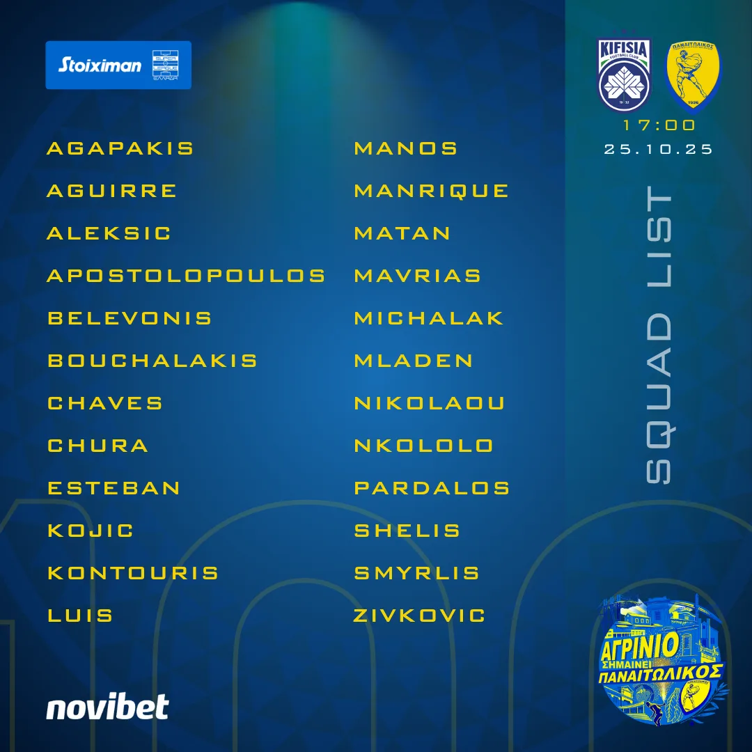 Στην αποστολή του εκτός έδρας αγώνα με την Κηφισιά συμμετέχουν οι ποδοσφαιριστές:
