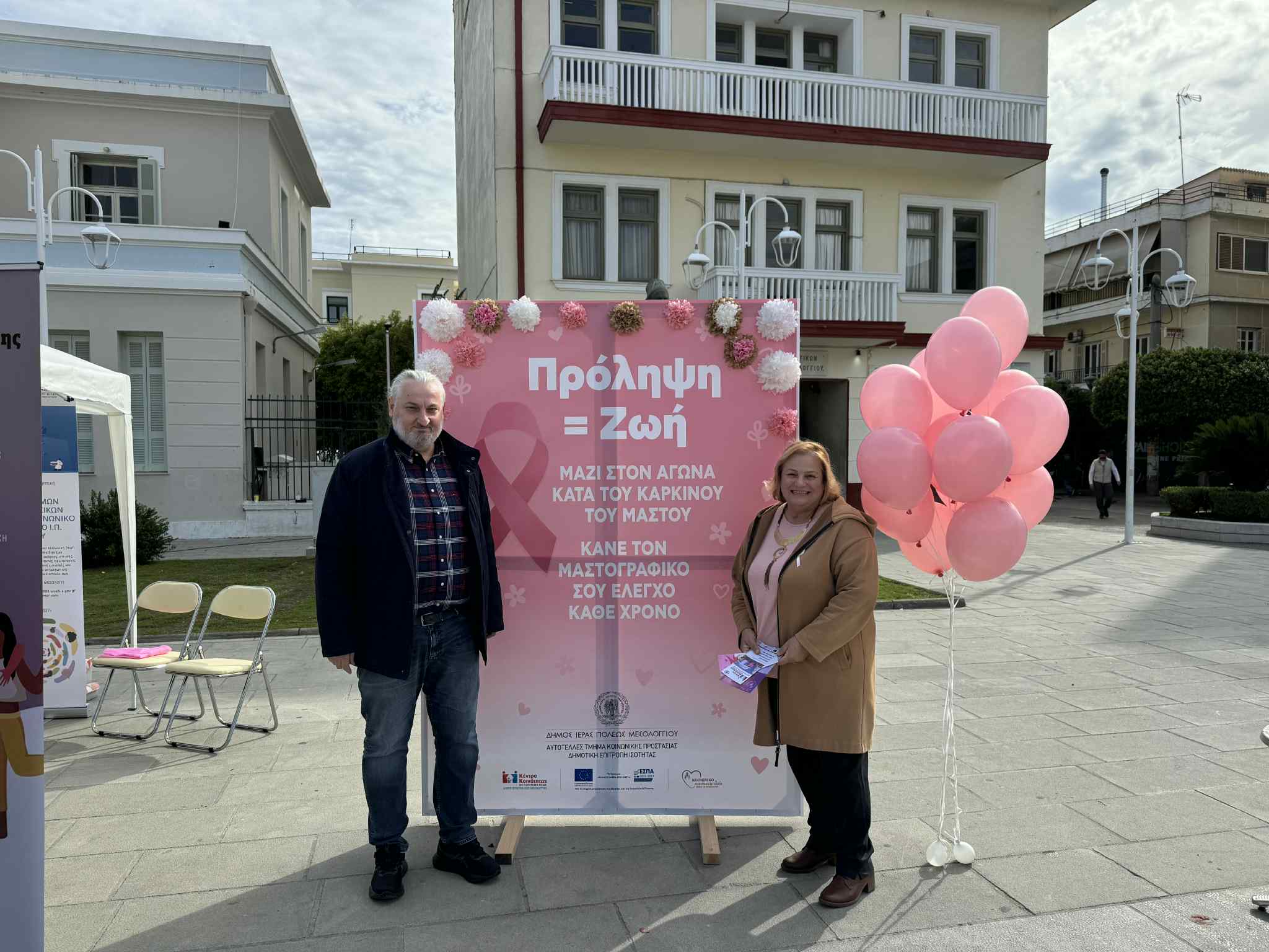 Ο Αντιδήμαρχος Κοινωνικής Προστασίας κ. Δημήτρης Ράπτης και η Πρόεδρος της Δημοτικής Επιτροπής Ισότητας των Φύλων κα Καλλιρρόη Αγγέλη, μαζί με το προσωπικό των Κοινωνικών Δομών του Δήμου, διένειμαν ενημερωτικό υλικό σε γυναίκες και άνδρες και ανέδειξαν τη σημασία της πρόληψης και του τακτικού ελέγχου.