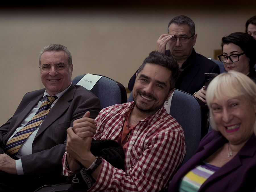 Παρέστησαν ο Δήμαρχος Μοσχάτου-Ταύρου Ανδρέας Ευθυμίου, η Εντεταλμένη Σύμβουλος Πολιτισμού της Περιφέρειας Αττικής Μπέσσυ Αργυράκη, η Γενική Γραμματέας της Ένωσης Σεναριογράφων Ελλάδος Τζένη Κοσμίδου, ο Πρόεδρος του Δημοτικού Συμβουλίου Θανάσης Μελίστας, οι Αντιδήμαρχοι Βασίλης Γρούμπας Αντιδήμαρχος Διοίκησης και Ανθρώπινου Δυναμικού και Γιάννης Σάββας Αντιδήμαρχος Τεχνικών Υπηρεσιών και Υποδομών και ο Γιάννης Βολιώτης, μέλος του Δ.Σ. της Ε.Σ.Ε., τα μέλη της συντονιστικής επιτροπής της Λέσχης Τέχνης και Πολιτισμού της Ε.Σ.Ε. Αθηνών, Σταυρούλα Βενιέρη και Πέτρος Λενούδιας, τα μέλη της Ένωσης Σεναριογράφων Ελλάδος Γιώργος Τζιβελέκης, Κλεοπάτρα Σβανά, Ανδρεάνα Σαπρίκη και Θάνος Τσάμπρας, τα μέλη της Λέσχης Τέχνης και Πολιτισμού της Ε.Σ.Ε. Γιώργος Αλτής, Πέννυ Μπινιάρη, Φώτης Αποστολάρας, Έλση Δημουλά, Γιώργος Παπαμιχαήλ, Γιόλα Αργυροπούλου, Σπύρος Κοντογιώργης, Τότα Βελισσάρη, Βαγγέλης Κράτσας, Σοφία Σταθάτου, Θεοδώρα Σωπασουδάκη, Αντώνης Καρυώτης, Αγόρω Τσίου, Θοδωρής Κουκράς, Αιμιλία Παγώνα, Γιάννης Σκάντζος Δήμητρα Αλτή κ.ά.