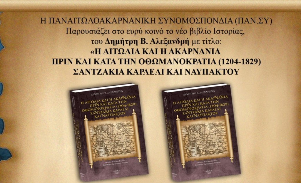 Η Παναιτωλοακαρνανική Συνομοσπονδία παρουσιάζει στο ευρύ κοινό το νέο βιβλίο Ιστορίας, του Δημήτρη Β. Αλεξανδρή με τίτλο «Η Αιτωλία και η Ακαρνανία πριν και κατά την οθωμανοκρατία (1204-1829) Σαντζάκια Κάρλελι και Ναυπάκτου».