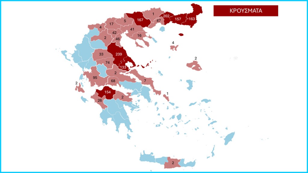 Για την τελευταία εβδομάδα αναφοράς (17–23 Νοεμβρίου 2025) καταγράφηκαν 52 νέα κρούσματα σε δεκατέσσερις Περιφερειακές Ενότητες, με βάση τα αποτελέσματα των εργαστηριακών ελέγχων.