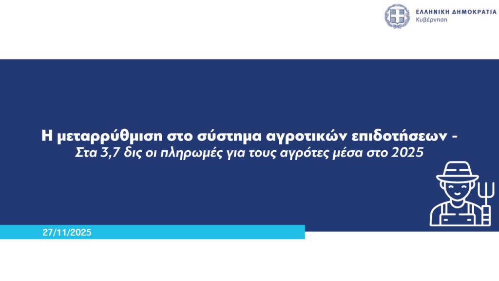 - το 2025 οι συνολικές πληρωμές προς τους αγρότες θα ανέλθουν στα 3,7 δισ. ευρώ.