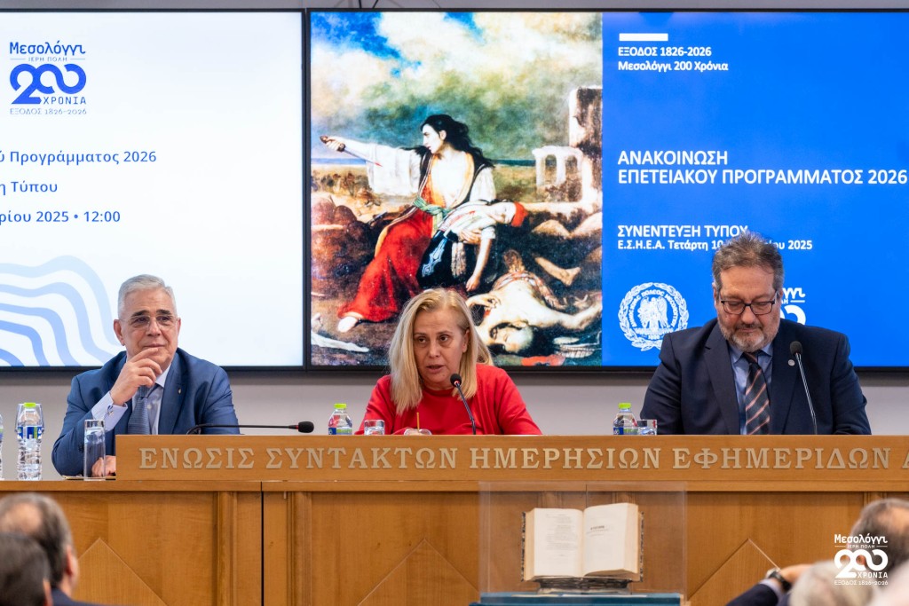 Σήμερα Τετάρτη 10 Δεκεμβρίου 2025, στην αίθουσα «Γιώργος Καράντζας» της ΕΣΗΕΑ, πραγματοποιήθηκε συνέντευξη Τύπου του Δημάρχου Ιεράς Πόλεως Μεσολογγίου, Σπυρίδωνος Β. Διαμαντοπούλου, κατά την οποία παρουσιάστηκε το πρόγραμμα εκδηλώσεων για τη Διακοσιοστή Επέτειο της Εξόδου.