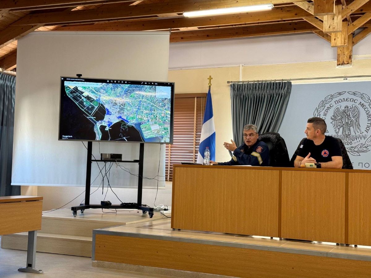 Η άσκηση επί χάρτου «Δευκαλίων 2025» πραγματοποιήθηκε σήμερα Πέμπτη, 11 Δεκεμβρίου 2025, με πρωτοβουλία του Αυτοτελούς Τμήματος Πολιτικής Προστασίας του Δήμου Ιερής Πόλης Μεσολογγίου και του αρμόδιου Αντιδημάρχου, Νίκου Παπανικολάου. Πρόκειται για άσκηση προσομοίωσης, η οποία πραγματοποιείται για πρώτη φορά, και αφορούσε στην αντιμετώπιση πλημμυρικών φαινομένων μέσω της εξέτασης τεσσάρων υποθετικών αλλά ρεαλιστικών επεισοδίων – συμβάντων. Στόχος της άσκησης ήταν η αξιολόγηση του βαθμού εξοικείωσης, εμπλοκής και συνεργασίας όλων των συναρμόδιων υπηρεσιών σε πραγματικές συνθήκες κρίσης.