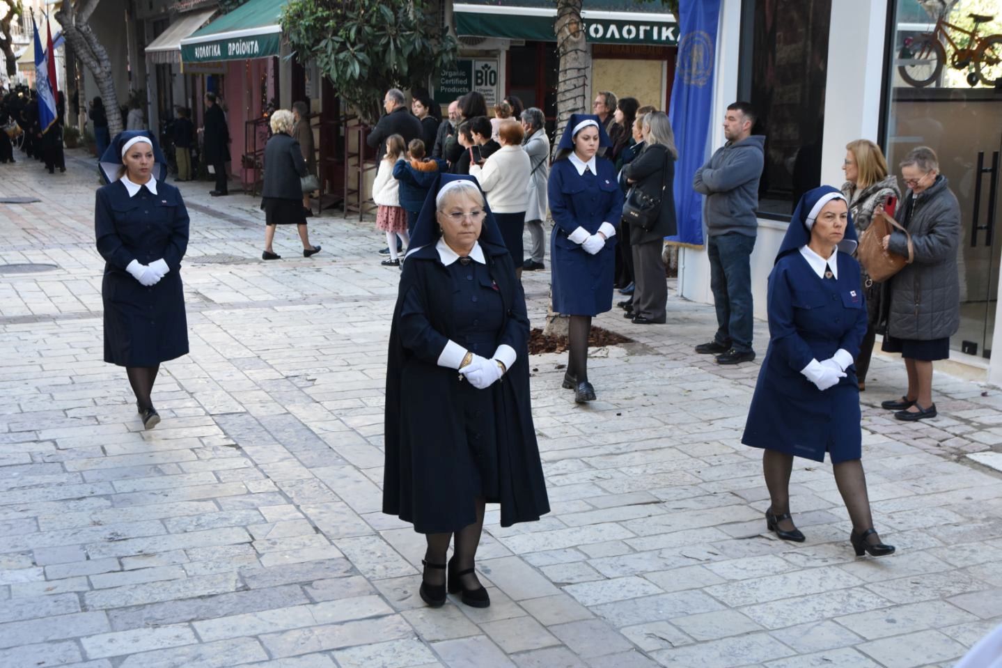 Ακολούθησε η καθιερωμένη λιτάνευση της ιερής εικόνας στους δρόμους της πόλης, με τη συμμετοχή και των τριών Φιλαρμονικών του Μεσολογγίου, στρατιωτικού αγήματος, εκπροσώπων συλλόγων και φορέων και σημαιοφόρων μαθητών από σχολεία της περιοχής. Η λιτανευτική πομπή κατέληξε στην κεντρική πλατεία, όπου τελέστηκε η καθιερωμένη αρτοκλασία υπέρ των Αρχών και του λαού.