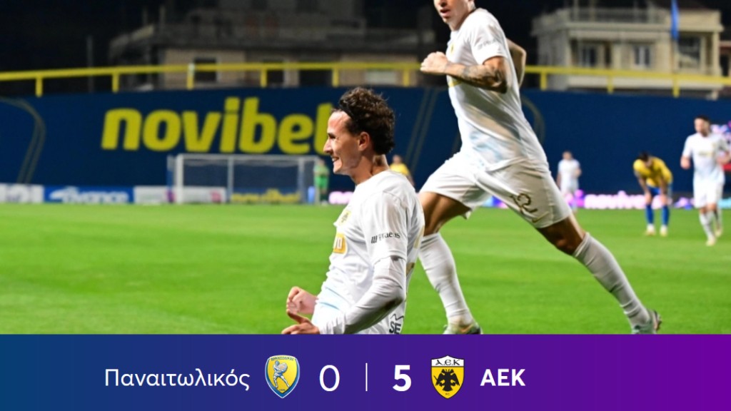 Εμφατικό πέρασμα της ΑΕΚ από το Αγρίνιο με «πεντάρα»! Η Ένωση με έναν φοβερό και τρομερό Λιούμπισιτς, με δύο γκολ και δύο ασίστ, έκρυψε την μπάλα και πέρασε με το εντυπωσιακό 0-5 από την έδρα του Παναιτωλικού φτάνοντας τις οκτώ σερί νίκες σε όλες τις διοργανώσεις και παραμένοντας μια ανάσα από την κορυφή, όπου έπιασε τον Ολυμπιακό στην ισοβαθμία και περιμένει. Η Ένωση με εξαιρετική ανάπτυξη έβαλε τις βάσεις της νίκης από το πρώτο μέρος με τον Λιούμπισιτς να... σερβίρει γκολ σε Πινέδα και Ζοάο Μάριο, ενώ στο δεύτερο μέρος με δύο προσωπικά τέρματα ο μεταμορφωμένος Αυστροκροάτης χαφ ανέβασε κι άλλο τον δείκτη του σκορ με τους κιτρινόμαυρους να περνάνε με αέρινη εμφάνιση από το Αγρίνιο. Ο Χρυσόπουλος με το πρώτο του τέρμα με τη φανέλα ήταν εκείνος που διαμόρφωσε το τελικό σκορ.