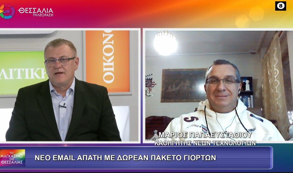 Τις Ηλεκτρονικές απάτες ανέλυσε και αποκάλυψε ο Καθηγητής Οικονομίας & Νέων Τεχνολογιών Μάριος Παπαευσταθίου, μιλώντας στη Θεσσαλία Τηλεόραση, στο πλαίσιο ενημερωτικής συζήτησης με τον δημοσιογράφο Γιάννης Κολλάτο.