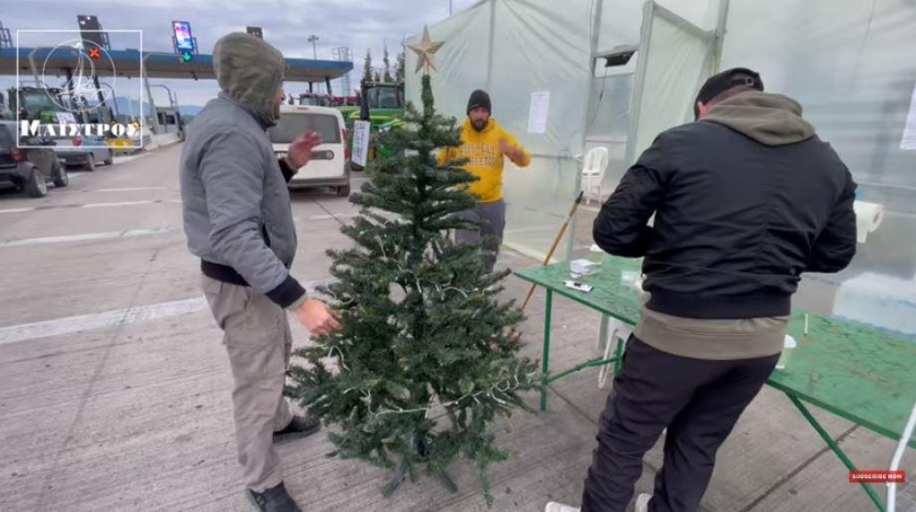 Δίπλα στα τρακτέρ και τις τέντες έστησαν το δένδρο δίνοντας εορταστικό τόνο στην κινητοποίηση.