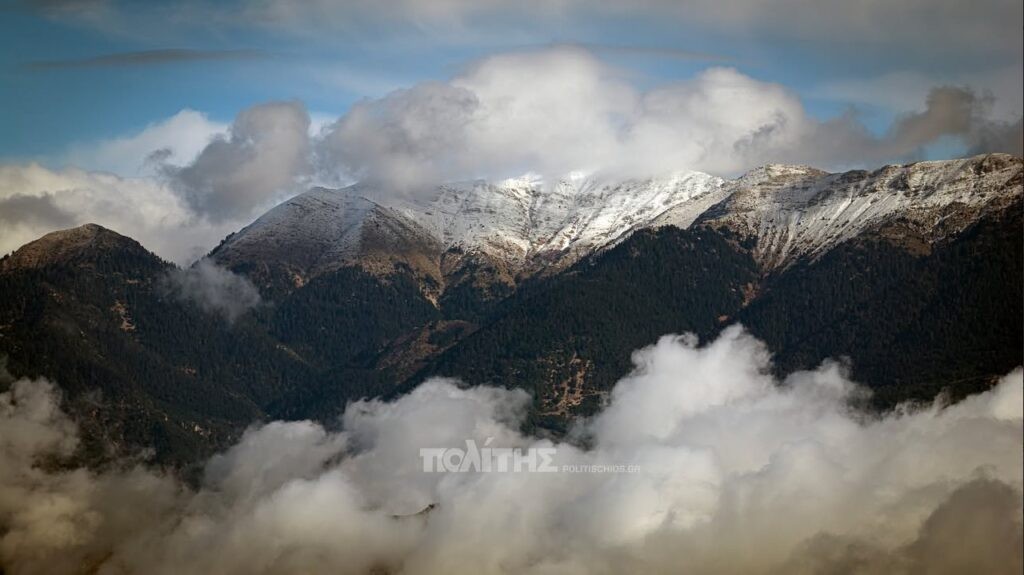 Ανήμερα των Χριστουγέννων, το χιόνι έκανε την εμφάνισή του κυρίως πάνω από τα 1.500 μέτρα, μεταμορφώνοντας το τοπίο και χαρίζοντας ένα καθαρό, σχεδόν εορταστικό περίγραμμα στο βουνό που αγκαλιάζει τον κάμπο του Αγρινίου.