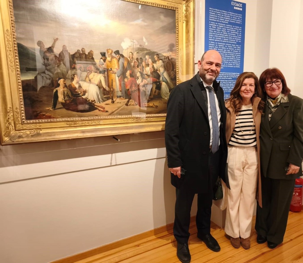 Μέσα σε κλίμα εξαιρετικής συγκίνησης οι επισκέπτες περιηγήθηκαν στον χώρο του Μουσείου του λόρδου Βύρωνα και είχαν την ευκαιρία να ακούσουν αναλυτικές πληροφορίες για τα δύο ιστορικά κειμήλια. Πρόκειται για την ενυπόγραφη ελαιογραφία του Γάλλου ζωγράφου Louis Joseph Toussaint Rossignon, που απεικονίζει την τελευταία Μετάληψη των υπερασπιστών του Μεσολογγίου, από τον επίσκοπο Ρωγών και Κοζύλης Ιωσήφ, πριν από την Ηρωική Έξοδο, την Κυριακή των Βαΐων του 1826, η οποία να σημειωθεί ότι ανήκει σε ιδιωτική συλλογή, αυτό είναι το πρώτο της ταξίδι εκτός Αττικής και είναι πράγματι εξαιρετικά συγκινητικό το γεγονός ότι αυτός ο πίνακας έρχεται να συναντήσει τον ιστορικό τόπο της έμπνευσής του, την Ιερή Πόλη που στάθηκε αφορμή για τη γέννηση αυτού του καλλιτεχνικού δημιουργήματος.