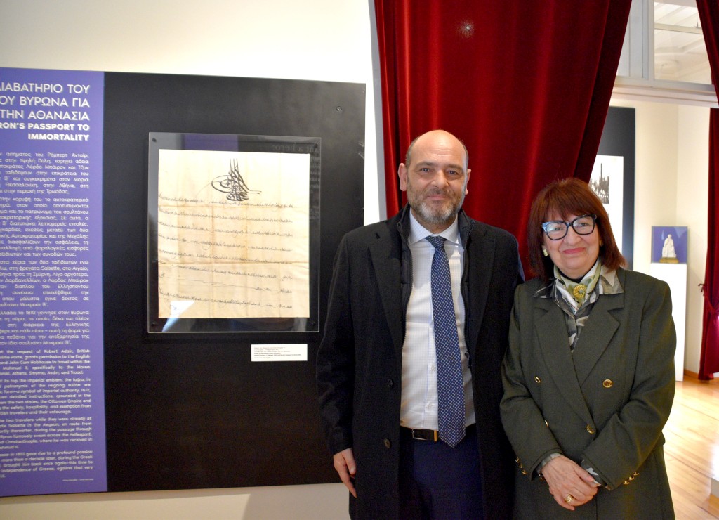 Το έτερο δε ιστορικό κειμήλιο αφορά το πρωτότυπο φιρμάνι (1810) του σουλτάνου Μαχμούτ του Β΄, το οποίο, εν είδει διαβατηρίου, παρείχε άδεια μετακίνησης εντός των εδαφών της Οθωμανικής Αυτοκρατορίας στον Λόρδο Βύρωνα, στο πρώτο του ταξίδι στην Ελλάδα (1809-1811).