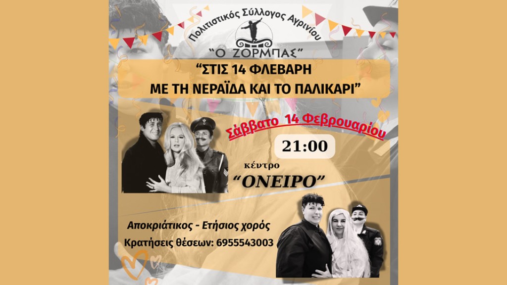 Ο Π.Σ. Αγρινίου ''ο ΖΟΡΜΠΑΣ'' ετοιμάζει τον Αποκριάτικο - Ετήσιο χορό του.