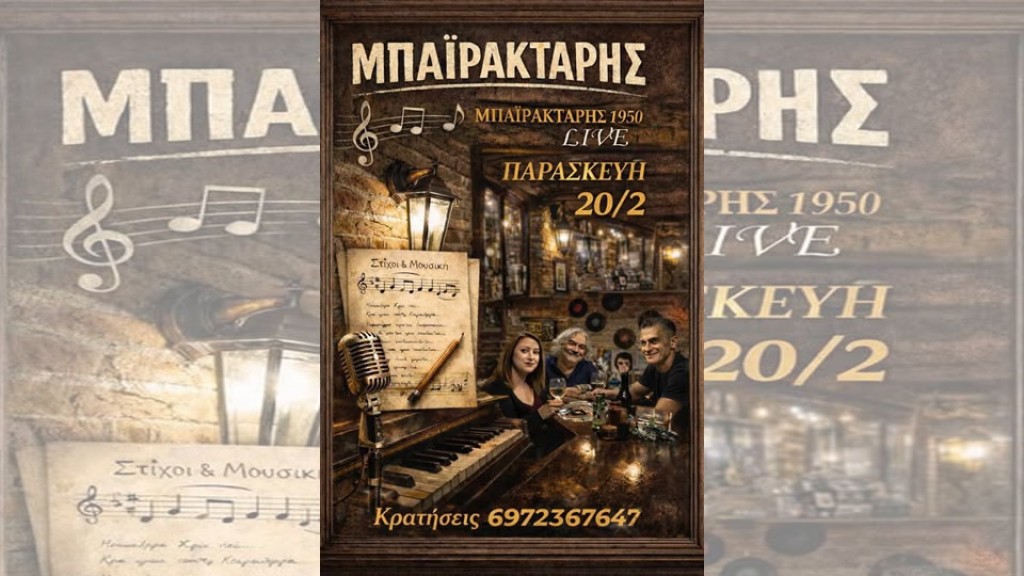 Κάθε Παρασκευή βράδυ απολαύστε το φαγητό σας στην Ταβέρνα "ΜΠΑΪΡΑΚΤΑΡΗΣ" στο Αγρίνιο σε ζεστό ατμοσφαιρικό περιβάλλον με ζωντανή μουσική.