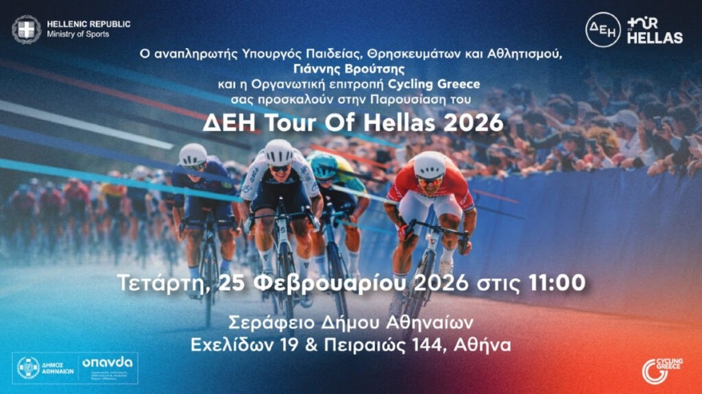 Η επίσημη παρουσίαση του ΔΕΗ Tour of Hellas 2026 θα πραγματοποιηθεί την Τρίτη 25 Φεβρουαρίου 2026, στο Σεράφειο, με ώρα έναρξης 11:00.