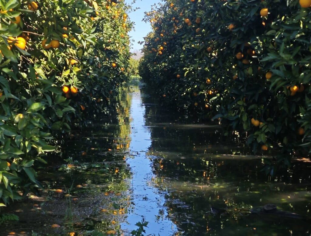 Ο κίνδυνος για τα κτήματα είναι εντονότερος με όψιμες ποικιλίες να κινδυνεύουν (όπως φαίνεται και σε κάποιες φωτογραφίες) να χαθεί ο καρπός από σήψη αλλά και τα δέντρα να έχουν προβλήματα από τις πολλές ημέρες που είναι στο νερό.