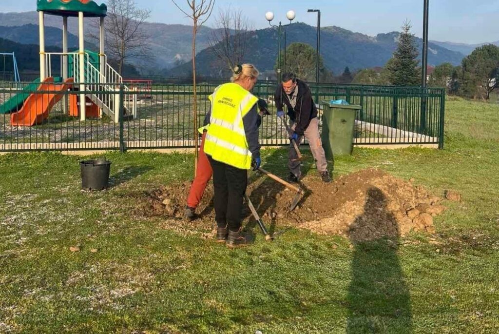 Φυτεύτηκαν περίπου 40 δέντρα και θάμνοι στην πλατεία, στην παιδική χαρά και στην είσοδο της παλαιάς πλατείας, δίνοντας μια νέα, πιο όμορφη και πράσινη εικόνα στον τόπο.