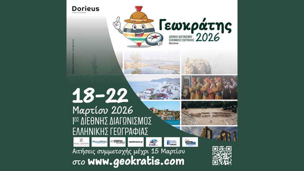Οι εγγραφές για τον 1ο Διεθνή Διαγωνισμό Ελληνικής Γεωγραφίας «Γεωκράτης 2026» έχουν ήδη ξεκινήσει και η ανταπόκριση από την Ελλάδα και το εξωτερικό είναι εντυπωσιακή. Η Dorieus Creative Company προσκαλεί όλους τους Έλληνες μαθητές, φοιτητές και λάτρεις της γεωγραφίας να δηλώσουν συμμετοχή στην κορυφαία ψηφιακή αναμέτρηση της χρονιάς.
