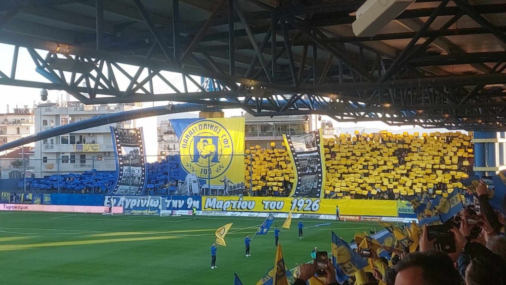 Οι φίλοι της ομάδας του Αγρινίου, του Παναιτωλικού, έχουν δώσει δυναμικό «παρών» στο γήπεδο για να υποστηρίξουν την αγαπημένη τους ομάδα την ημέρα της συμπλήρωσης των 100 χρόνων της. Το κορεό που ανέβασαν έκλεψε τις εντυπώσεις και ενίσχυσε το απίθανο κλίμα στο γήπεδο.