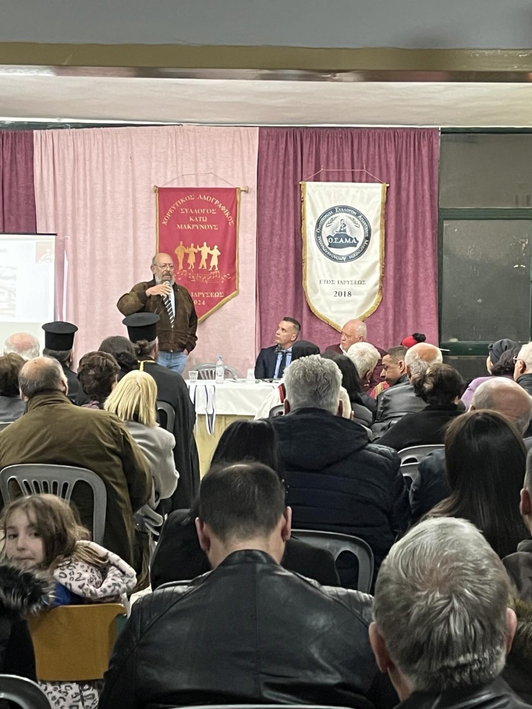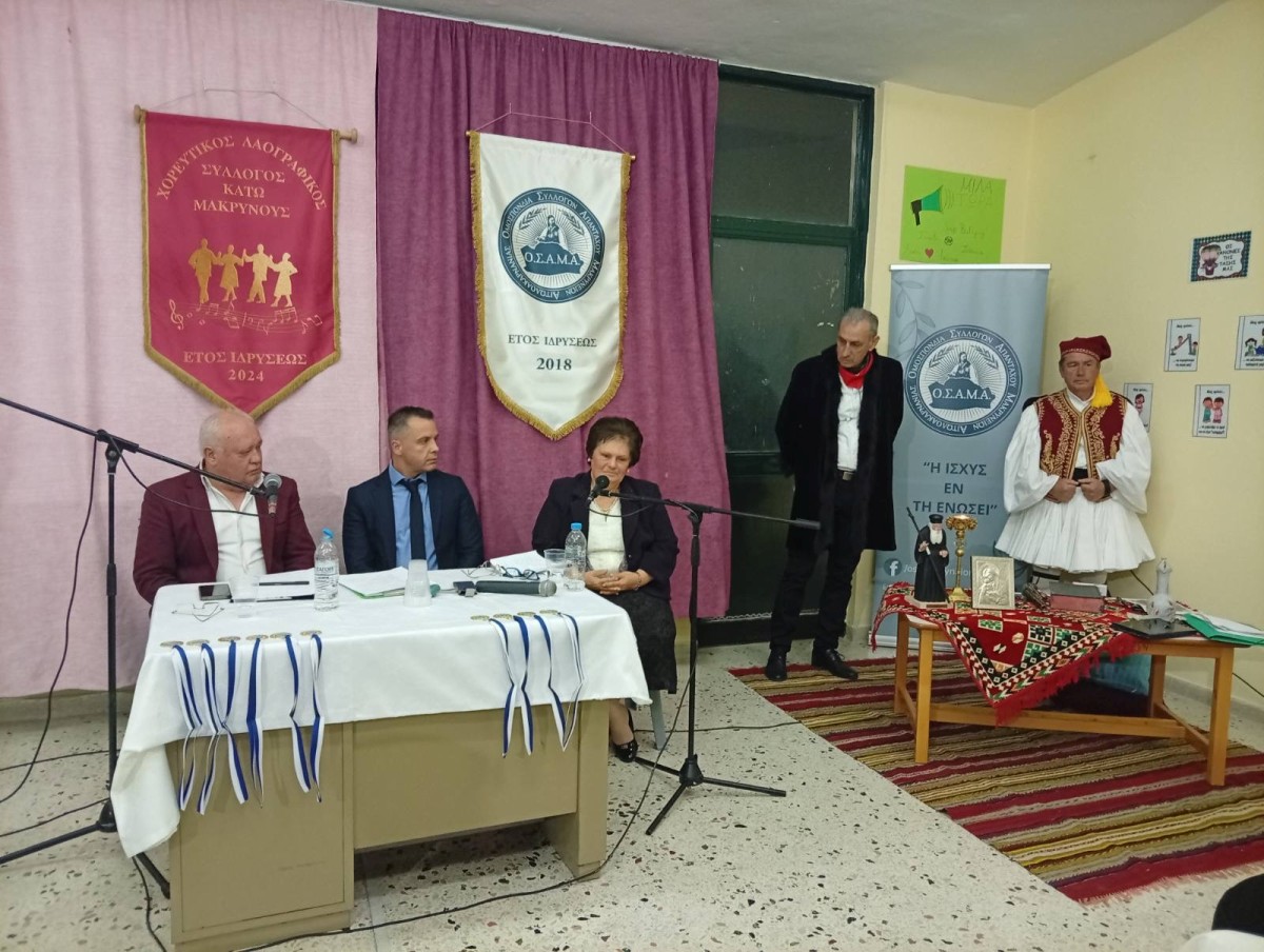 Η εκδήλωση που διοργάνωσε η Ομοσπονδία Συλλόγων Απανταχού Μακρύνειων το Σάββατο 7 Μαρτίου 2026 & ώρα 19:30, στέφθηκε με απόλυτη επιτυχία, με πλήθος κόσμου να γεμίζει τον χώρο του Δημοτικού Σχολείου Κάτω Μακρυνούς, τιμώντας την ιστορία και την κληρονομιά του τόπου μας.