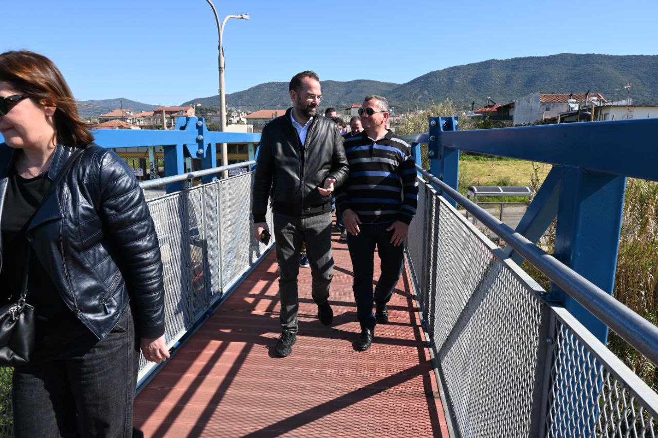 Στη συνέχεια, πραγματοποιήθηκε επίσκεψη στην πεζογέφυρα Νεάπολης που κατασκευάστηκε σε σύντομο χρονικό διάστημα, καθώς η προηγούμενη κατασκευή είχε καταστραφεί από διέλευση οχήματος μεγάλου ύψους. Η αποκατάσταση προχώρησε με ταχύτητα, δεδομένου ότι η πεζογέφυρα χρησιμοποιείται για την ασφαλή διέλευση των κατοίκων από την εθνική οδό Αγρινίου – Αντιρρίου.