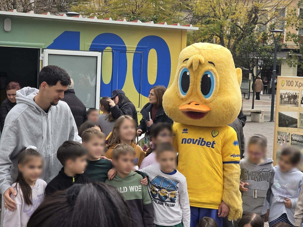 Η μασκότ του Παναιτωλικού, ο Πανέτος καθώς και ο ποδοσφαιριστής του Τίτορμου, Λάζαρ Κόγιτς, βρέθηκαν σήμερα στην κεντρική πλατεία του Αγρινίου μαζί με μαθητές του 2ου Δημοτικού Σχολείου Αγρινίου.