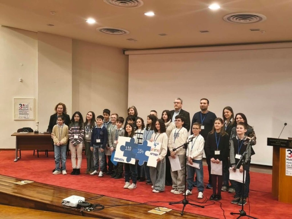 Οι μαθητές της πέμπτης τάξης του 4ου Δημοτικού Σχολείου Αγρινίου συμμετείχαν με επιτυχία στο 3ο Μαθητικό Μαθηματικό Συνέδριο με τίτλο «ΜΑΘΗΜΑΤΙΚΕΣ ΠΡΟ(Σ)ΚΛΗΣΕΙΣ ΣΤΟΝ 21 Ο ΑΙΩΝΑ», στο Συνεδριακό Κέντρο της Πανεπιστημιούπολης στην Πάτρα, την Κυριακή 22 Μαρτίου 2026.