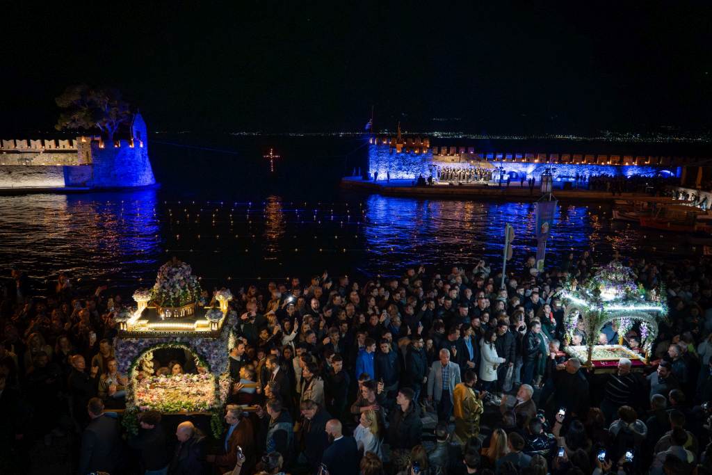 Χιλιάδες επισκέπτες κατέκλυσαν τη Ναύπακτο το βράδυ της Μεγάλης Παρασκευής, συμμετέχοντας σε ένα από τα πιο ιδιαίτερα τελετουργικά της Περιφοράς των Επιταφίων.  Το Ενετικό Λιμάνι μεταμορφώθηκε σε ένα σκηνικό σπάνιας ομορφιάς και συγκίνησης, με τις πολεμίστρες να φωτίζονται από δεκάδες αναμμένες δάδες και τον φλεγόμενο σταυρό στην είσοδο να δημιουργεί μία εικόνα που δύσκολα ξεχνιέται.