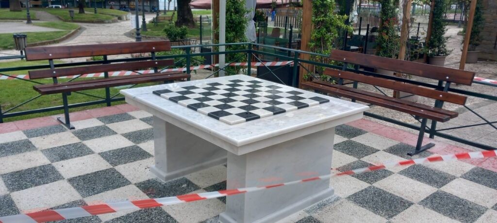 Τοποθετήθηκαν παράλληλα παγκάκια ενώ μέσα στις επόμενες ημέρες θα είναι διαθέσιμα και τα πιόνια για τους δημότες, τα οποία και θα μπορούν να χρησιμοποιήσουν όποτε επιθυμούν από κατάστημα της περιοχής, ελεύθερα.