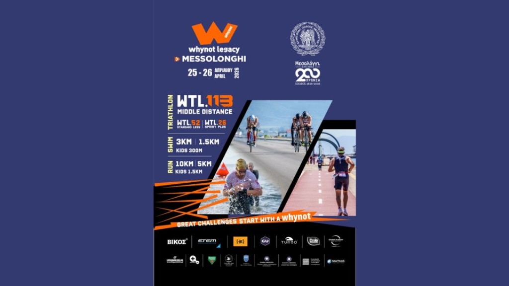Ο Δήμος Ιεράς Πόλεως Μεσολογγίου ενημερώνει τους δημότες, τους επαγγελματίες και τους επισκέπτες της περιοχής ότι, στο πλαίσιο διεξαγωγής του επίσημου πρωταθλήματος τριάθλου WTL (Whynot Triathlon League) και WSL (Whynot Swimming League), θα εφαρμοστούν έκτακτες κυκλοφοριακές ρυθμίσεις το Σάββατο 25 και την Κυριακή 26 Απριλίου.