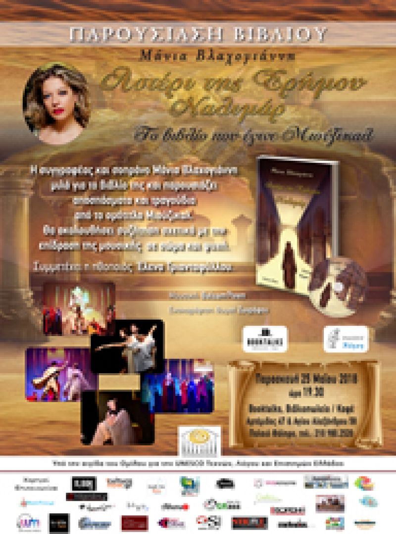 Η συγγραφέας και σοπράνο Μάνια Βλαχογιάννη μιλά για το βιβλίο της και παρουσιάζει αποσπάσματα και τραγούδια από το ομότιτλο μιούζικαλ. Θα ακολουθήσει συζήτηση σχετικά με την επίδραση της μουσικής σε σώμα και ψυχή. Συμμετέχει η ηθοποιός Έλενα Τριανταφύλλου.
