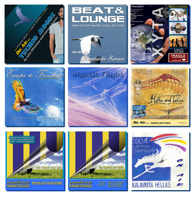 Στην επόμενη φωτογραφία μπορείτε να δείτε τα εξώφυλλα μερικών μουσικών έργων, εκ' των οποίων πολλά απο αυτά φιλοτεχνήθηκαν απο τον Αγρινιώτη ζωγράφο Χρήστο Παπανίκο. Πατώντας πάνω στην φωτογραφία θα μεταβείτε στην ιστοσελίδα του Κ. Σαμψών στο σημείο εκείνο που μπορείτε να βρείτε περισσότερες πληροφορίες για κάθε έργο ξεχωριστά.
