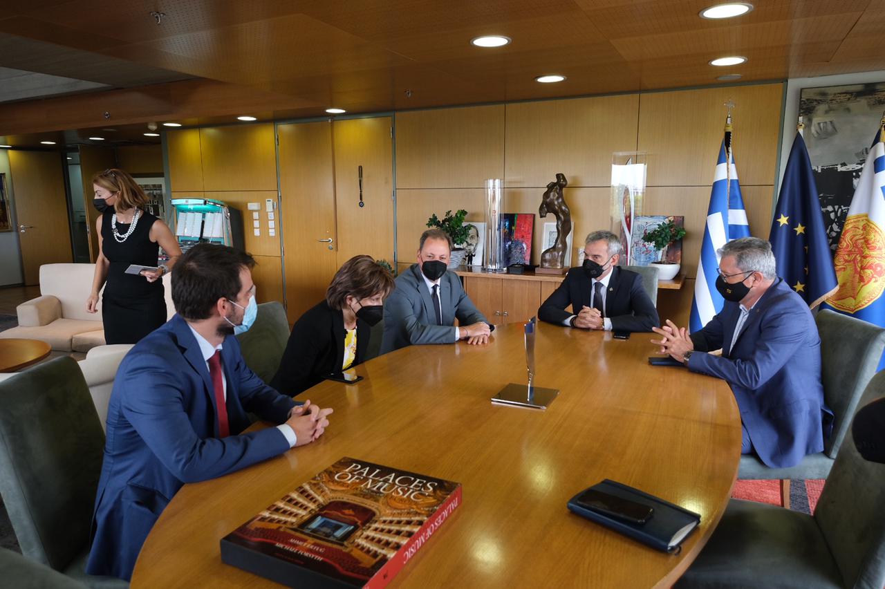 Στη συνάντηση παρευρέθηκαν η Γενική Γραμματέας του υπουργείου κ. Χριστιάνα Καλογήρου και ο Γ.Γ. του Δήμου Θεσσαλονίκης κ. Ευθύμης Φωτόπουλος.