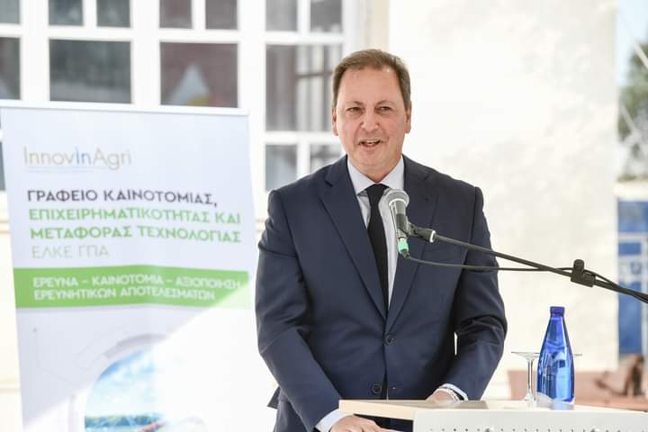 Τη συνεχή και σταθερή στήριξη του ΥΠΑΑΤ στο καινοτόμο έργο του Γεωπονικού Πανεπιστημίου Αθηνών εξέφρασε ο Υπουργός Αγροτικής Ανάπτυξης και Τροφίμων, κ. Σπήλιος Λιβανός, κατά την παρουσία του στα εγκαίνια της 1ης Έκθεσης Έρευνας, Καινοτομίας & Μεταφοράς Τεχνολογίας του Γεωπονικού Πανεπιστημίου Αθηνών.