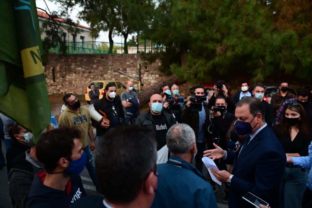 Έναν ενδιαφέροντα, ζωντανό διάλογο με αγρότες- διαδηλωτές, είχε κατά την είσοδό του στο κτίριο που πραγματοποιείται σήμερα η Συνδιάσκεψη για τη νέα ΚΑΠ στη Μυτιλήνη, ο Υπουργός Αγροτικής Ανάπτυξης και Τροφίμων κ. Σπήλιος Λιβανός.