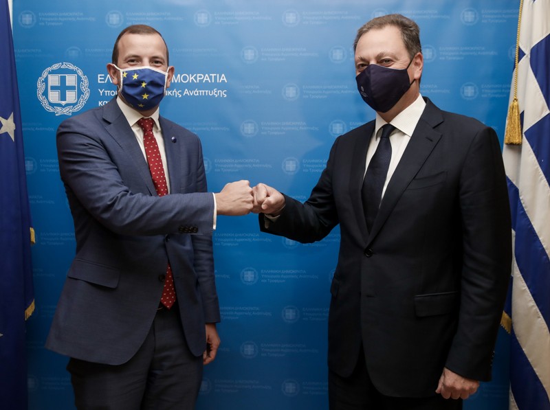 «Ενημέρωσα τον Επίτροπο για τις δράσεις που υλοποιούμε στην κατεύθυνση της βιώσιμης ανάπτυξης Βάσει αυτού παρουσιάσαμε το πρόγραμμα ΣΔΙΤ ύψους άνω των 4 δισ. € σε βάθος 25ετίας που περιλαμβάνει μεγάλα περιβαλλοντικά έργα υποδομής, φράγματα και αρδευτικά δίκτυα, καθώς και τα προγράμματα οικολογικών σχημάτων (eco schemes), βιολογικής γεωργίας και την πρόοδο του ΕΠΑΛΘ 2014-2020 και τις προοπτικές του Προγράμματος Αλιείας, Υδατοκαλλιέργειας και Θάλασσας (ΠΑΛΥΘ) 2021-2027. Συζητήσαμε, επίσης, το θέμα της Κ.Α.Π, το τελικό σχέδιο της οποίας για τη χώρα μας θα καταθέσουμε έως το τέλος του έτους.