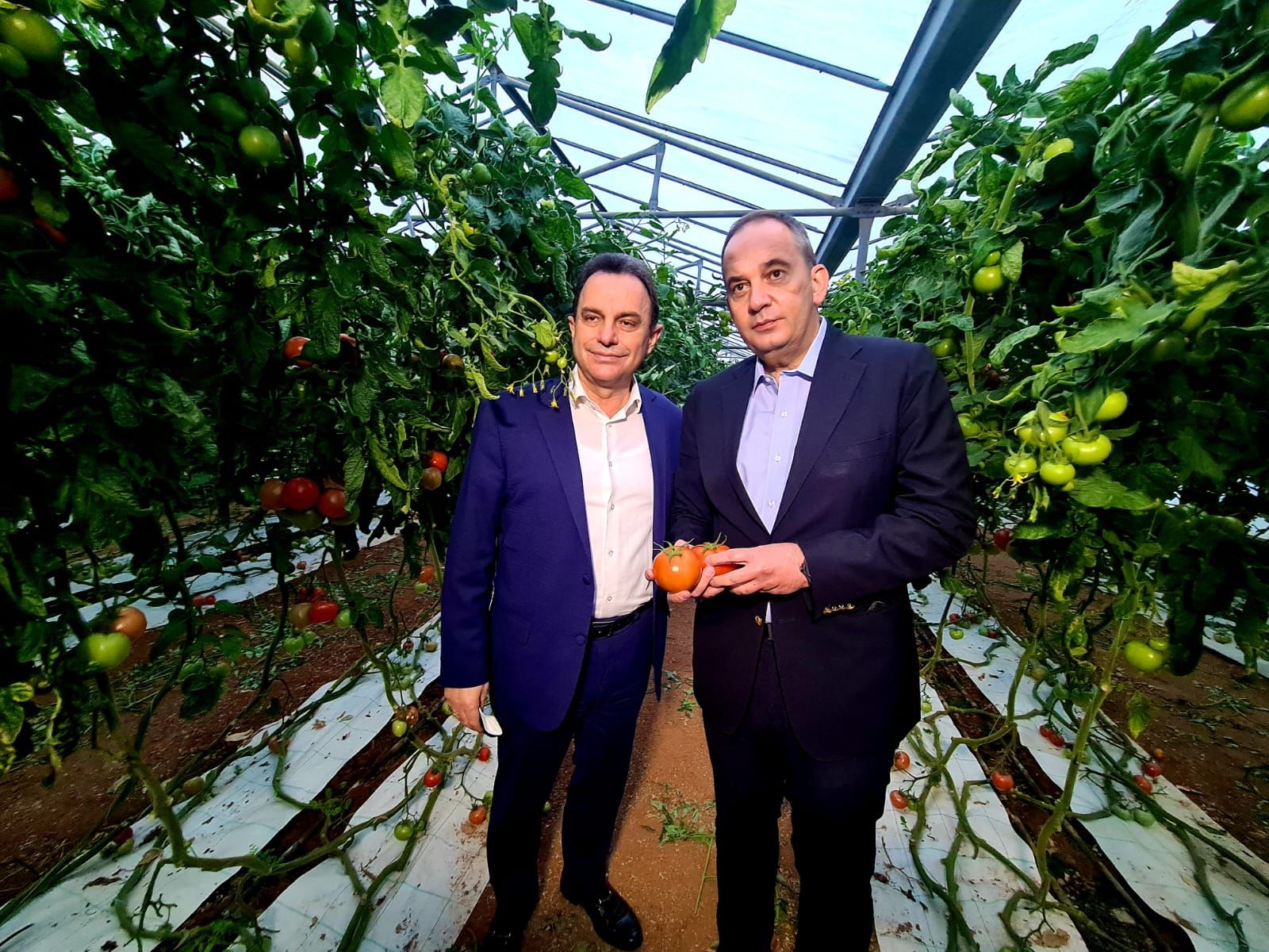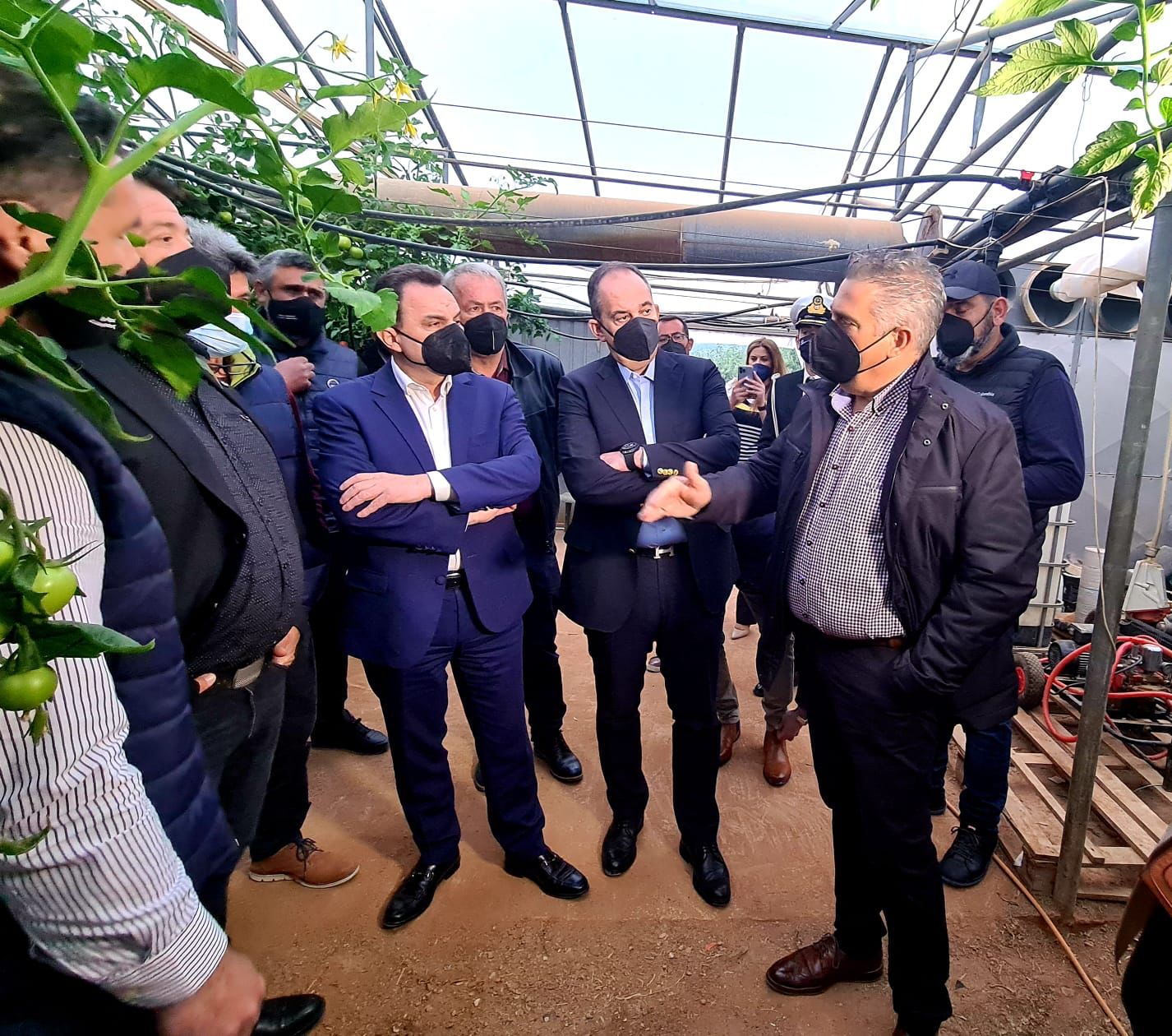 Πριν τη συνάντηση στο Δημαρχείο της Ιεράπετρας, ο ΥΠΑΑΤ κ. Γ. Γεωργαντάς, μαζί με τον υπουργό Ναυτιλίας και Νησιωτικής Πολιτικής κ. Γιάννη Πλακιωτάκη, επισκέφθηκαν τις εγκαταστάσεις του Αγροτικού συνεταιρισμού "Κάμιρος", καθώς και θερμοκηπιακές εγκαταστάσεις της περιοχής.