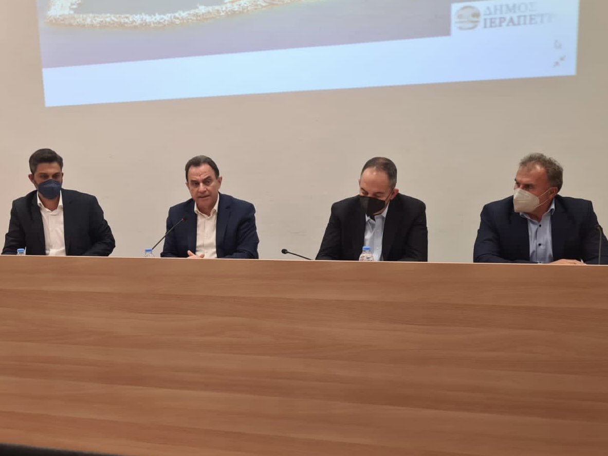 Σε σύσκεψη που πραγματοποιήθηκε στο Δημαρχείο με την παρουσία του Υπουργού Ναυτιλίας και Νησιωτικής πολιτικής κ. Γ. Πλακιώτικη, του ΓΓ κ. Δ. Παπαγιαννίδη και του Δημάρχου Ιεράπετρας κ. Θεοδόσης Καλαντζάκη, έγινε εξαντλητική συζήτηση σε ιδιαίτερα θετικό κλίμα με πάνω από 40 εκπροσώπους φορέων του αγροδιατροφικού τομέα της περιοχής.