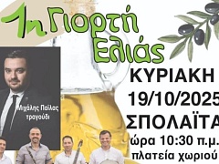 Την Κυριακή (19.10.25) στην πλατεία της Σπολάϊτας θα πραγματοποιηθεί η 1η Γιορτή Ελιάς, όπως αναφέρει η Εφημερίδα «Συνείδηση», μια γιορτή για τον τόπο, τη γη και τους ανθρώπους της. Αναλυτικά το δημοσίευμα: Η πρώτη γιορτή ελιάς στη Σπολάϊτα είναι γεγονός! Πρόκειται να πραγματοποιηθεί το πρωί της Κυριακής 19.10.25, στις 10:30, στην πλατεία του χωριού. Με αυτή τη γιορτή «εγκαινιάζεται» μια νέα…