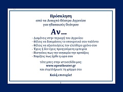 Το Θεατρικό Τμήμα Ανοιχτού Θεάτρου Αγρινίου, εν όψει της νέας θεατρικής σεζόν 2025-26, απευθύνει πρόσκληση σε άνδρες και γυναίκες, ερασιτέχνες ηθοποιούς, ηλικίας 25-50 ετών από την περιοχή του Αγρινίου, για τη νέα του θεατρική παράσταση. Μετά την μεγάλη επιτυχία της παράστασης «Πλακώσανε τα UFO», συνεχίζουμε στο ίδιο πνεύμα, για να προσφέρουμε ποιοτικά έργα, με στόχο τη διασκέδαση και τον…