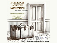 Η Διοίκηση του Εμποροβιομηχανικού Συλλόγου Μεσολογγίου προσκαλεί σε εκδήλωση που διοργανώνει το Σάββατο, 13 Σεπτεμβρίου και ώρα 19:30 στο Κτίριο Χρυσόγελου, για να τιμήσει τον συμπολίτη μας λογοτέχνη – ποιητή Λάκη Χαντζή, τακτικό μέλος της Ένωσης Ελλήνων Λογοτεχνών και της Παγκύπριας Λογοτεχνίας και Ποίησης. Θα εκτεθούν ποιήματά του σε πάπυρο και χειρόγραφα γραμμένα σε κορνίζα, ενώ ο ίδιος ο…