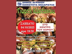 Ο Δήμος Αγρινίου και ο Πολιτιστικός Περιβαλλοντικός Σύλλογος Άνω Κερασόβου διοργανώνουν τη φετινή «Γιορτή Κάστανου» την Κυριακή 12 Οκτωβρίου 2025, στο Άνω Κεράσοβο, στο γραφικό γήπεδο του χωριού, μέσα στο καταπράσινο δάσος. Η εκδήλωση θα ξεκινήσει στις 12:00 το μεσημέρι και υπόσχεται μια αξέχαστη εμπειρία για μικρούς και μεγάλους, με ζωντανή μουσική, άφθονα φρεσκοψημένα κάστανα και παραδοσιακό…