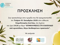 Το Επιμελητήριο Αιτωλοακαρνανίας διοργανώνει Ενημερωτική ημερίδα με τίτλο «Επιμολύνσεις στο ελαιόλαδο από ορυκτέλαια, λόγω λανθασμένων πρακτικών» πραγματοποιείται την Τετάρτη 1η Οκτωβρίου 2025 και ώρα 19:30, στην αίθουσα του Επιμελητηρίου στο Αγρίνιο. Η εκδήλωση, που διοργανώνεται από το Επιμελητήριο Αιτωλοακαρνανίας, με τη συμμετοχή της Περιφέρειας Δυτικής Ελλάδας και την Αγροδιατροφική Σύμπραξη…